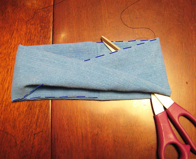 Sew up that short edge, and - you might think - you're all done, except for turning the lovely little scarf right side out. Right......?